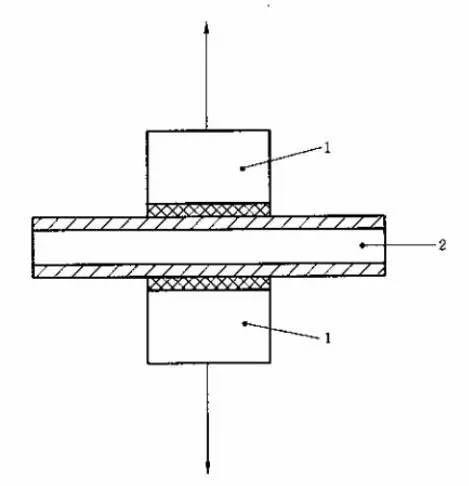 將試片放在兩個表面涂有膠黏劑的試柱中間,兩個試柱應位于試片的中央且同軸心排列。將試驗組合置于定中心裝置中,在膠黏劑固化期內保持同軸心排列。如在較高濕度條件下進行特殊試驗,膠黏劑的固化時間要盡可能的短,此時適宜使用雙組份快干環氧膠黏劑。除非另有規定或商定,固化后,使用切割裝置沿試柱的周線切透至底材。